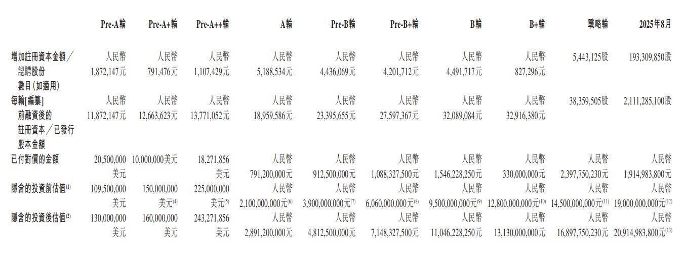 壁仞科技研发投入所需的资金,也基本来自市场融资。招股书显示,截至当前,壁仞科技已累计完成10轮融资,累计融资额达到90亿元,在今年8月完成超19亿元的融资后,其投后估值达到209.15亿元。