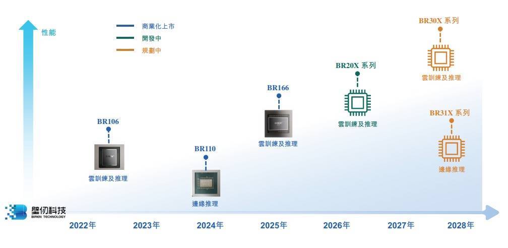 招股书显示,自2019年以来,壁仞科技已开发出第一代GPGPU架构,并已成功开发两款芯片,即BR106及BR110,并开发了一系列基于GPGPU的硬件。2023年1月,壁仞科技实现BR106量产,并于2024年10月实现BR110量产。此外,壁仞科技还通过共封装两个BR106芯片裸晶,利用芯粒技术及先进的裸晶间互连技术推出性能更高的BR166芯片产品。