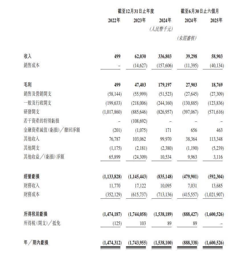 业绩方面,2022年、2023年、2024年及2025年上半年,壁仞科技营业收入分别为50万元、6203万元、3.37亿元及5890.3万元;年内亏损分别为14.74亿元、17.44亿元、15.38亿元及16.00亿元;经调整净亏损分别为10.38亿元、10.51亿元、7.67亿元及5.52亿元。